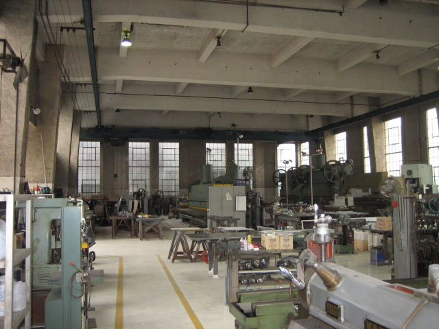 体育館のような外見ですが、中身は工場です。 大型の機械も余裕をもって置ける広さです。